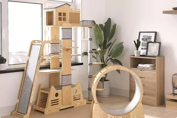 This cat tree with its unique wheel feature is a game-changer. It's perfect for my large cat who needs a lot of stimulation and exercise. The tree is robust, and the wheel spins smoothly. It's also aesthetically pleasing, which is a great bonus.