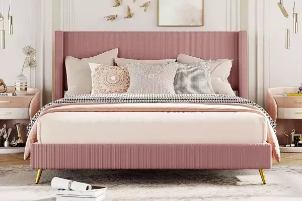 Introducing our Chic Queen Size Corduroy Platform Bed, a perfect blend of modern elegance and robust functionality. Designed to elevate your bedroom’s ambiance, this bed features a plush, tufted corduroy headboard and sleek metal legs, creating a contemporary yet timeless look. The versatile color options – Beige, Gray, Blue, Pink – cater to diverse tastes and room themes, ensuring a match for any decor.