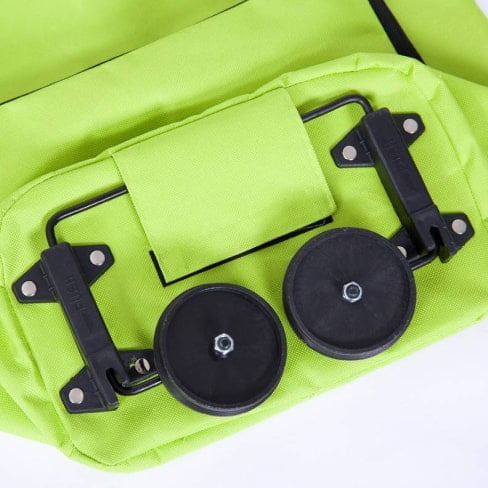 Bought this bag for grocery shopping in downtown Chicago. Needed a bag with good wheels, good holding capacity, and ability to zip close due to rain. All expectations met and it is a work horse. I have carried 12 pack seltzer water, two wine bottles, two large lemonade bottles, meat, cheese, fish, crackers, bread, salad supplies etc... in one trip. I like the outside pocket for my umbrella and sunglasses etc... I have also used this bag to pull two full size camping chairs to outside movies etc... Wheel are excellent and bag bumps up over curbs. Handles (two of them )are strong and good for getting on and off public transportation with a heavy load. Check the different colors on pricing as I got the black and white with good discount.