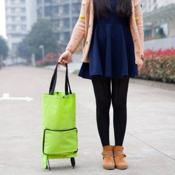 Height is optimal for me. The material seems good. You can smell a weird scent at first but It will pass when you use it one time. It can easily fall over If you do not hold it when it's full. You should drag the bag If you can't drive it. But even dragging is enough to handle weight because while dragging you carry lighter and that way is comfortable. You shouldn't expect a miracle bag or shopping car under 50 dollars. It is very very cost effective. I have lumbar lordosis so I can't carry any bag above 2 kgs but with this bag, I carried 7 kgs thanks to wheels. Also, I don't want to go shopping with a car or a huge thing so I bought this; when you make it be zipped it's like a handbag.
