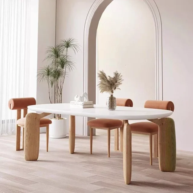 Envision your dining space transformed into a haven of contemporary sophistication and timeless elegance. Our luxurious, oval-shaped dining table is designed to be the centerpiece of cherished moments, whether it’s family dinners, festive gatherings, or tranquil morning coffees. The rich, marble-effect surface atop a sturdy wooden foundation blends modern aesthetics with the durability required for everyday use. With its generous proportions, this piece accommodates up to eight guests in comfort, making it as practical as it is stylish.
