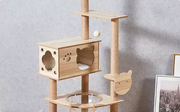 What makes our Deluxe Space Module Cat Tree Tower special is its blend of functionality and style. The elegant wood finish complements any home decor, while the multiple tiers offer your cat a high vantage point and a sense of security. The hemp rope wrapping not only serves as a durable scratching post but also adds a natural, rustic charm.