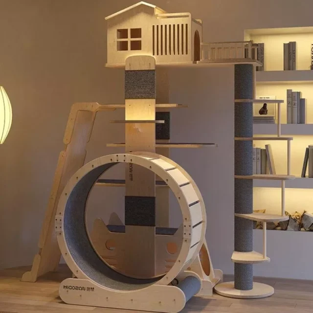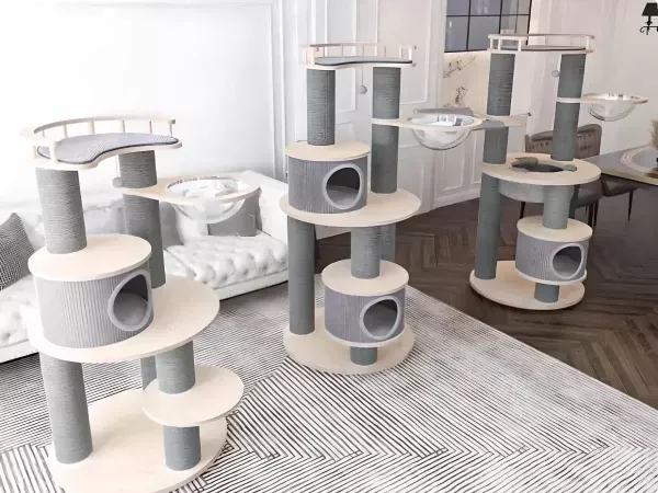 What sets our Luxury Wooden Cat Tower apart is its combination of functionality, durability, and elegant design. The use of high-quality wood not only ensures its longevity but also adds a touch of sophistication to your home. It’s not just a cat tree; it’s a piece of furniture that both you and your pet will love.