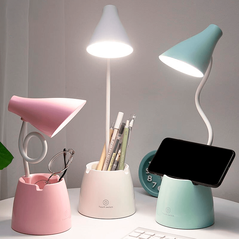 Our desk lamp stands out for its blend of practicality and style. It’s not just any lamp; it’s a smart addition to your workspace. With its flexible neck, you can direct light precisely, reducing eye strain during long study or work sessions. The touch dimming feature allows you to create the perfect ambiance for reading, writing, or relaxing. Plus, the pen holder feature adds to its utility, making it a must-have for organized individuals.