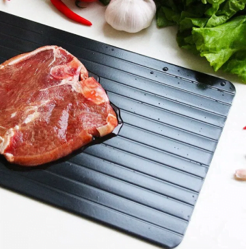 Great tray. There are many days that I forget to take something out of the freezer for dinner. This tray defrosts frozen items in less than 2 hours, like a whole steak