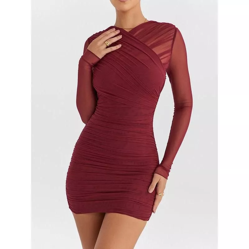 This dress is your go-to choice for a range of occasions, from a night out with friends to an upscale party. Its versatility makes it suitable for autumn and winter events, providing both warmth and style. The sheer long sleeves add a touch of elegance, making it ideal for evening events or club nights.