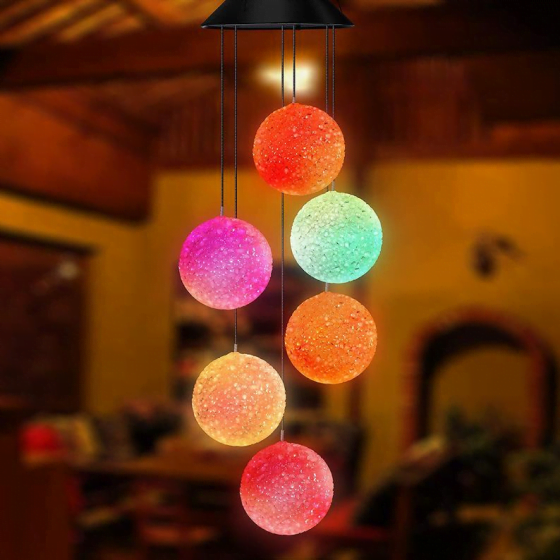 When the day goes dark, the LED orbs of this beautiful chime automatically turn on to illuminate your space (as long as the chime is fully charged).