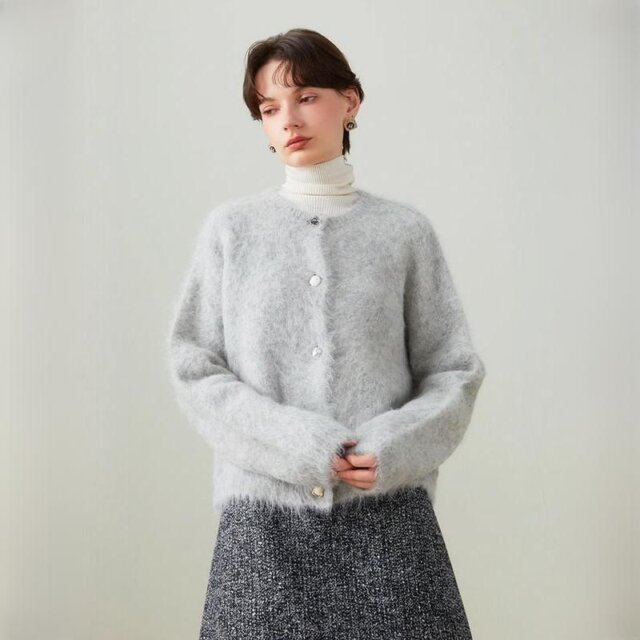 What sets this cardigan apart is its exceptional blend of style and functionality. The turn-down collar adds a touch of sophistication, while the regular yarn thickness ensures comfort without compromising on style. Made from high-quality acrylic, it offers just the right amount of stretch for a flattering, slim fit.